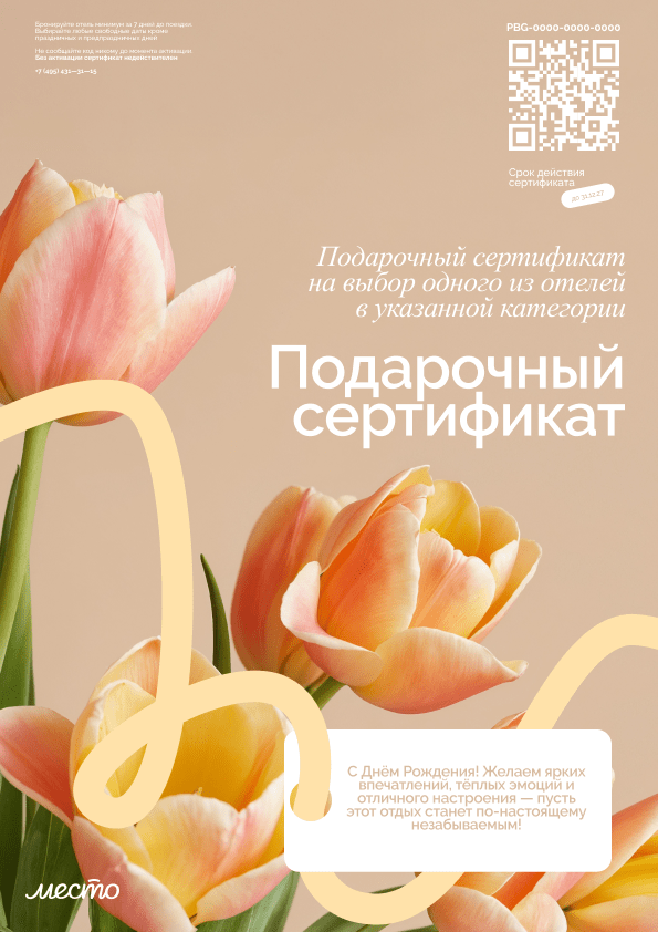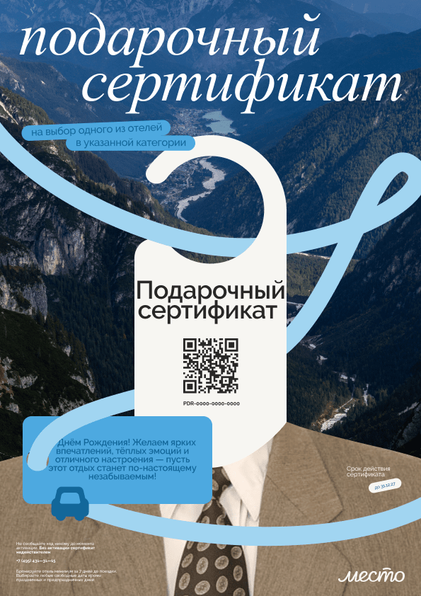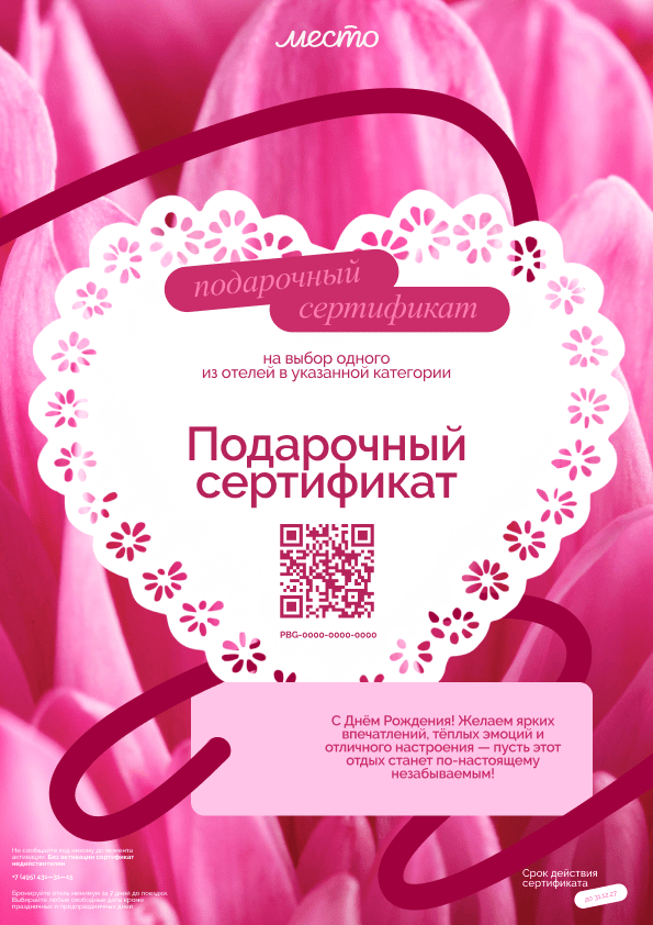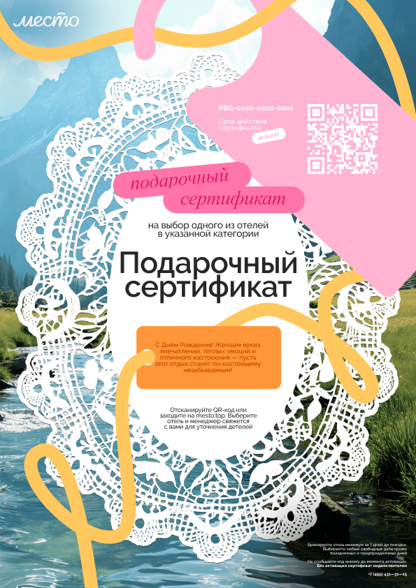 Мы стараемся сохранять гибкость, чтобы подарочный сертификат в отель оставался удобным и не ограничивал в выборе.