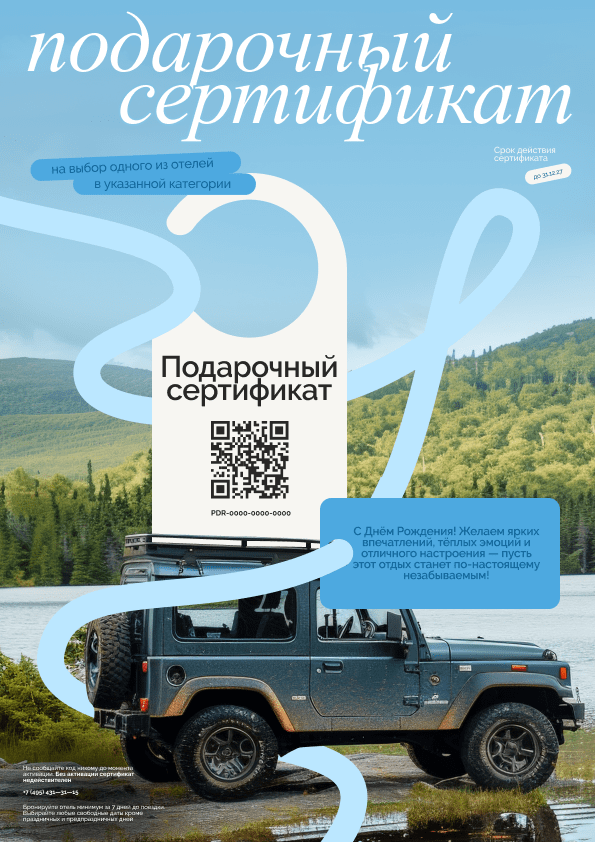 Подарочный сертификат работает иначе. Он даёт возможность не принимать решение сразу — получатель сам выбирает, когда и куда поехать, уже под своё настроение и планы.